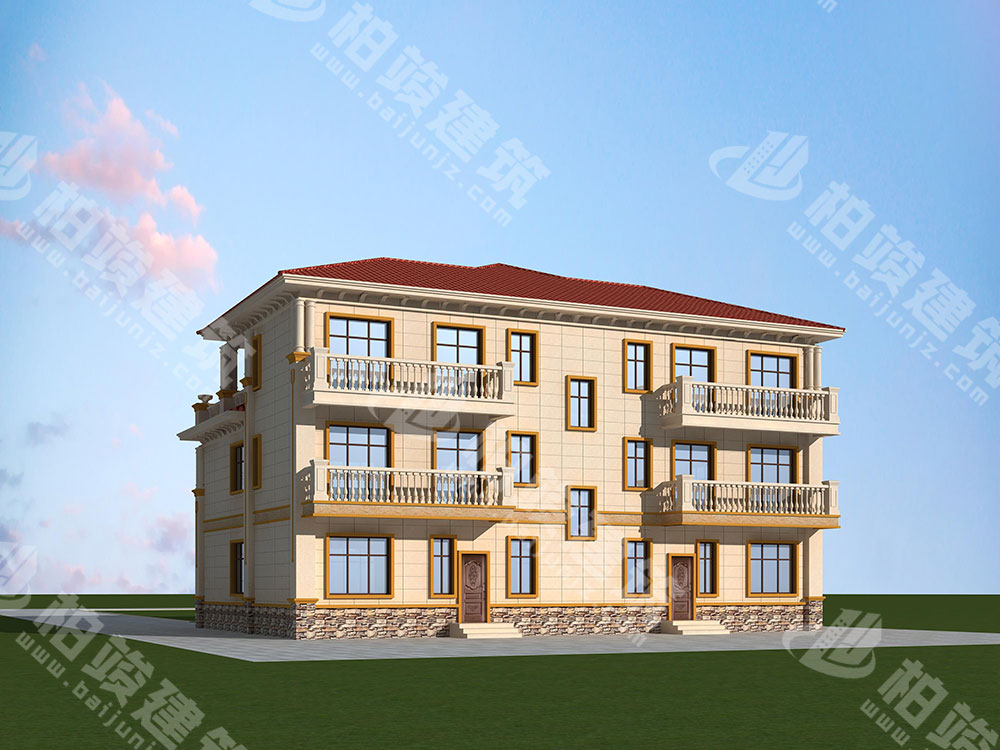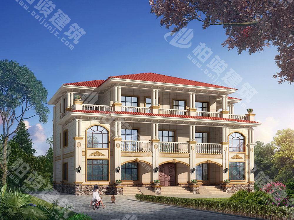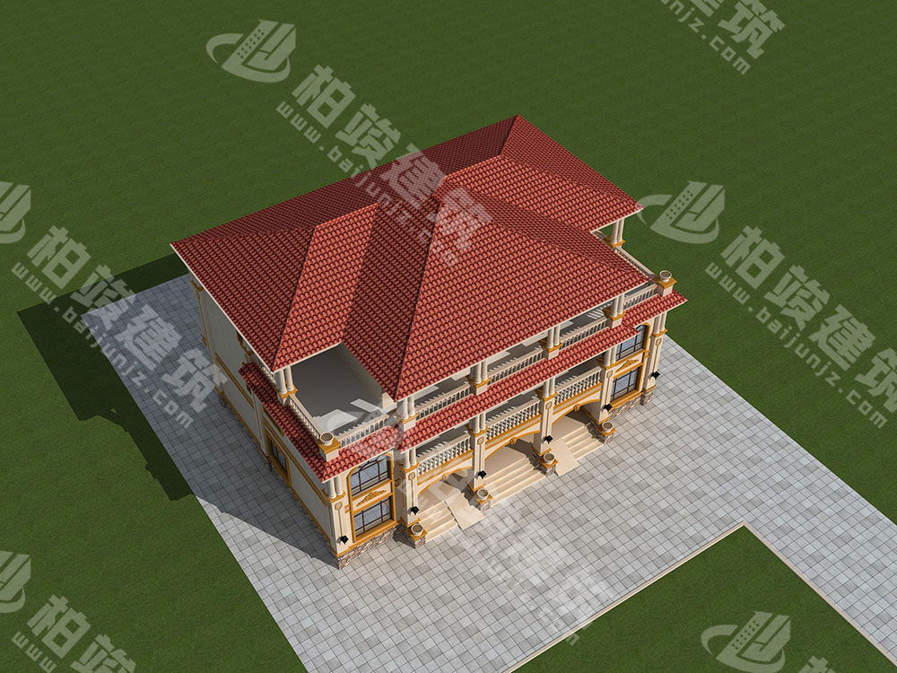屋頂造型:坡屋頂設(shè)計(jì),多個(gè)立面高低起伏,錯(cuò)落有致;紅色釉面瓷瓦色澤鮮麗,經(jīng)久耐用